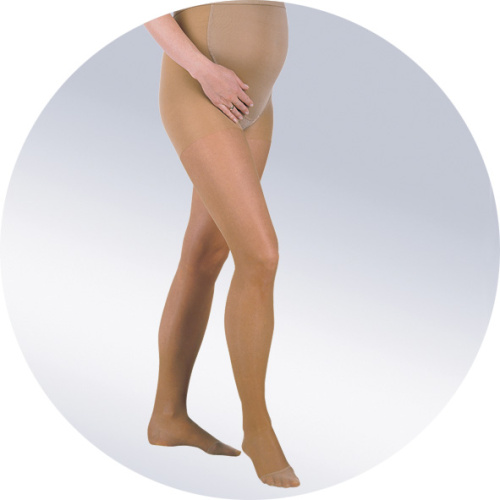 Колготки компрессионные для беременных женщин создают легкую дозированную компрессию по всей длине ног. Имеют специальную некомпрессионную вставку в области живота, позволяющую носить их в течение всего срока беременности. Компрессионные колготки для беременных используются для профилактики болезней вен в период I триместра.