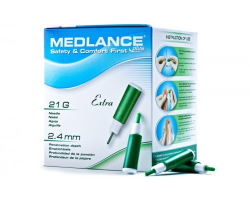 Medlance Plus Extra: глубина прокола 2,4 мм, используется для более глубоких проколов. Цвет зеленый