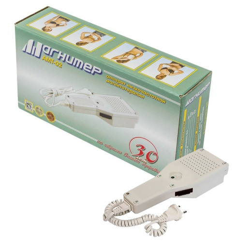 Аппарат "Магнитер АМТ-02" - предназначен для оказания терапевтического воздействия пульсирующим низкочастотным магнитным полем (НЧМП) и переменным НЧМП индукцией 10-30 мТл. Наводимое магнитное поле в аппарате АМТ-02 «МАГНИТЕР» позволяет проводить терапевтические процедуры не только в стационарных, но и домашних условиях, по назначению врача-физиотерапевта. Лечебное действие НЧМП обеспечивает развитие местных противоотечных, противовоспалительных эффектов, активацию микроциркуляции, нормализацию лимфо- и кровообращения, активацию обменно-трофических и регенераторных процессов. Оптимизация местных тканевых и общих иммунологических реакций, активация системы лимфо- и кровообращения, нормализации проводимости нервных импульсов в нервных структурах позволяет достичь в организме человека необходимый уровень восстановления функций центральной и вегетативной нервных систем, и эндокринной системы. Применение аппарата АМТ-02 «МАТНИТЕР» положительно влияет на:
