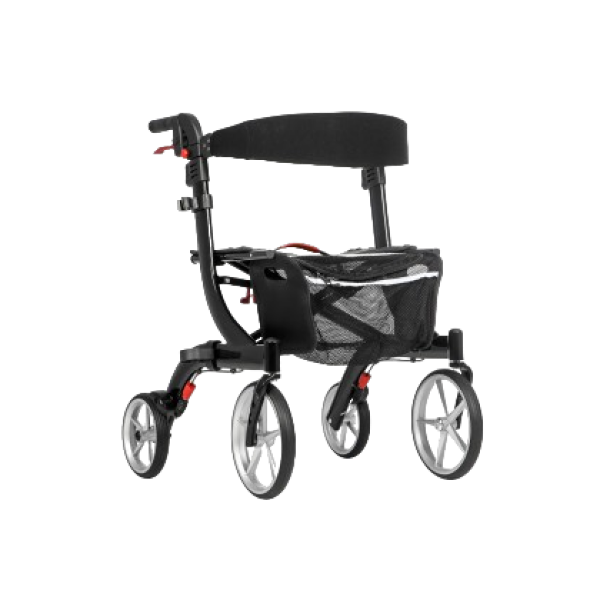 - роллаторы — предусматривают колеса на всех опорах. Дают человеку возможность перемещаться со скоростью, к которой он привык. Часто оснащены сиденьем и сумкой;
