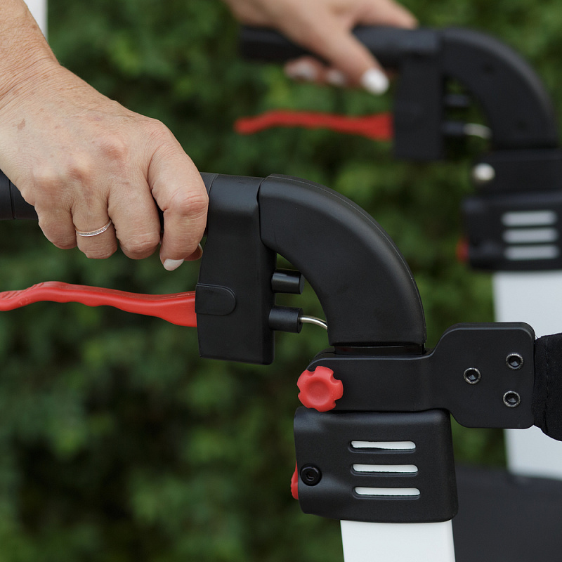 - Рукоятки регулируются по высоте, оснащены ручными тормозами, обеспечивающими подтормаживание при движении