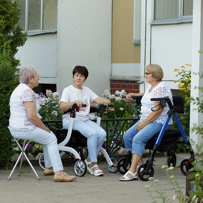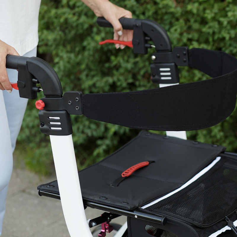 - Ходунки-роллаторы оснащены мягким сиденьем и мягким упором для спины