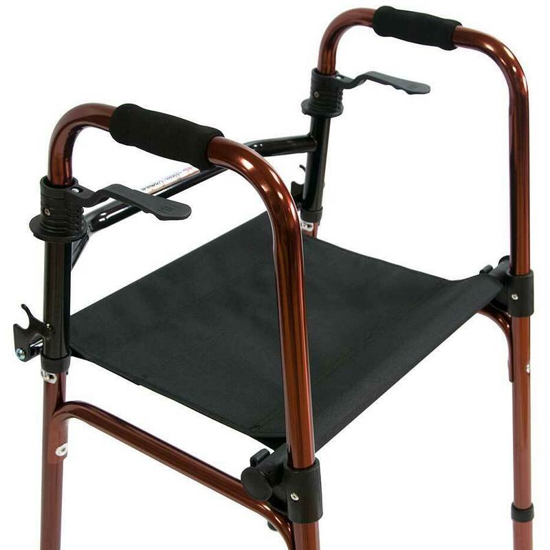 Ходунки предназначены для людей с инвалидностью, пожилых людей и больных, проходящих реабилитацию. Позволяют сохранять равновесие, улучшают координацию движений и уменьшают нагрузку на ноги.Опорные поручни ходунков выполнены из анодированного алюминия и не подвергается коррозии, скрепляющая рама – из стали с полимерным покрытием. Встроенное в конструкцию сиденье позволяет использовать ходунки как стул. Ходунки легко складываются и не занимают много места, имеют 8 положений регулировки высоты с шагом в 2,5 см. Мягкие накладки на поручнях ходунков не дают рукам скользить; резиновые наконечники, расположенные на опорах, предохраняют от скольжения по твердым поверхностям.
