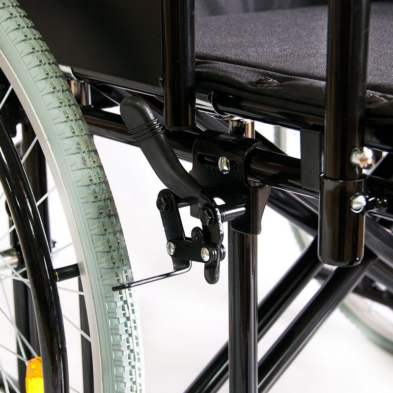 Несущие элементы и рама кресла-коляски модели сконструированы таким образом, чтобы обеспечить повышенную грузоподъемность и длительную безопасную эксплуатацию. Рама кресла-коляски выполнена из высокопрочной стали с лакокрасочным покрытием, которое защищает от коррозии и облегчает санитарную обработку. Важной особенностью кресла-коляски является особая конструкция рамы — ее складная часть состоит из двойной крестовины, которая позволяет равномерно распределить нагрузку на несущие элементы конструкции. Отметим, что конструктивной особенностью данной кресло-коляски является возможность регулировки высоты крепления задних и передних колес, что дает возможность настроить кресло-коляску для пользователей разного роста. Также данная функция позволяет отрегулировать угол наклона сиденья коляски, что обеспечивает больший комфорт при эксплуатации.