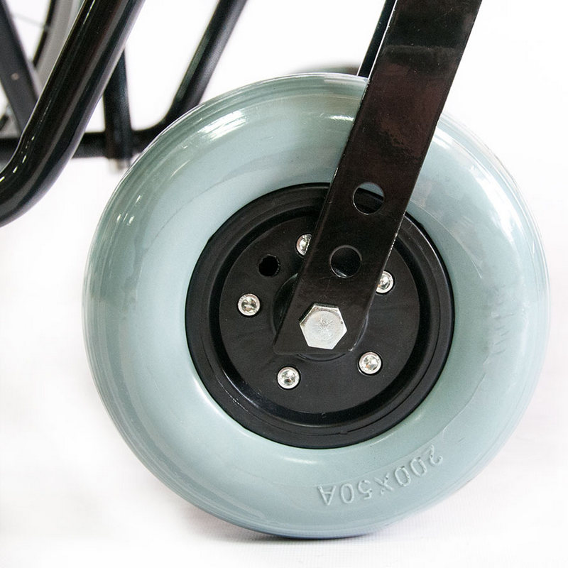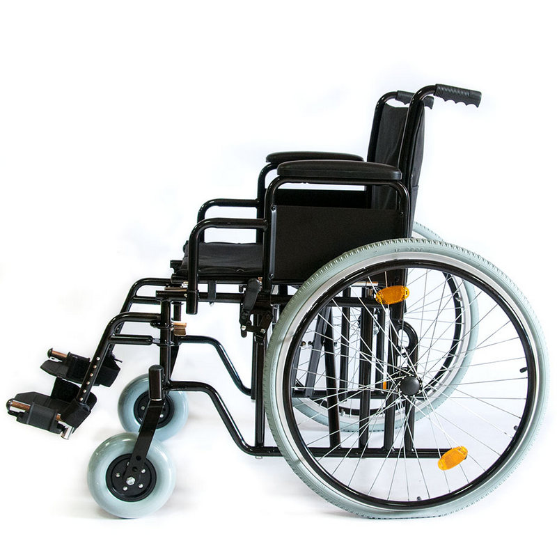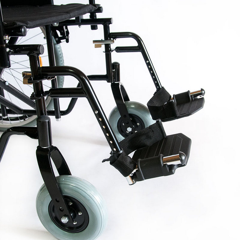 Инвалидная кресло-коляска предназначена для людей с большой массой тела. Данная модель представлена в трех вариациях — с эффективной шириной сиденья 54, 59 и 64 см, что дает возможность подобрать необходимую модификацию в соответствии с нуждами любого пользователя и клиента.Сиденье и спинка кресла-коляски сделаны из прочной ткани, способной выдерживать большие нагрузки. Еще одной важной особенностью конструкции является увеличенный диаметр несущей оси задних колес, которая сделана из специального высокопрочного сплава. Колеса данной коляски оснащены пневматическими шинами из износоустойчивой резины.