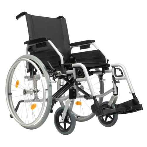 Инвалидная кресло-коляска оснащена ремнями безопасности, ремнями для стоп, карманом для мелочей на спинке.