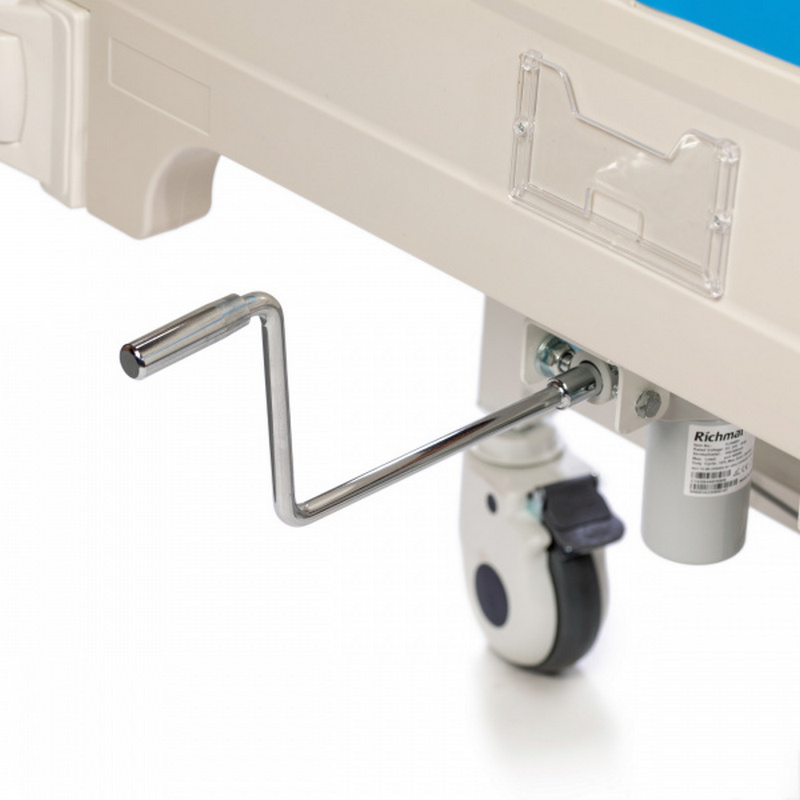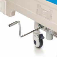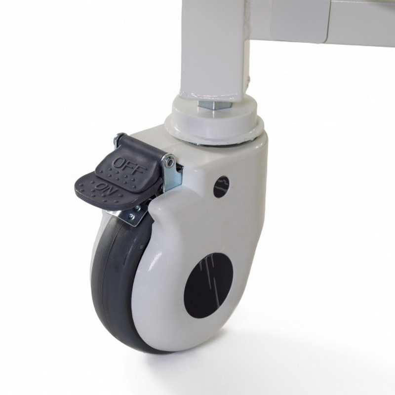 - Самоориентирующиеся колеса кровати оснащены индивидуальными педальными тормозами.