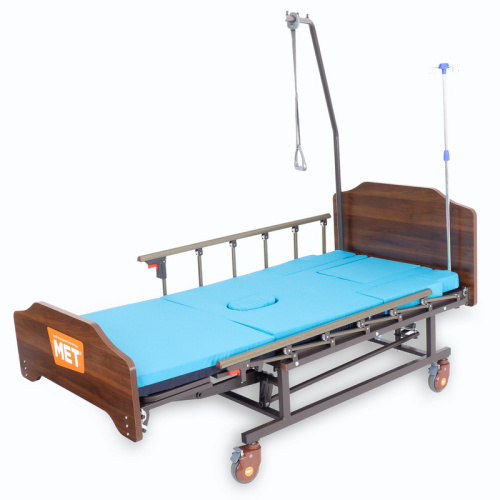 Медицинская кровать с функцией переворачивания, спинками из ЛДСП приятной "деревянной" текстуры, объединяющая в себе функции кардио-кресла и переворачивания больного с санитарным оснащением.