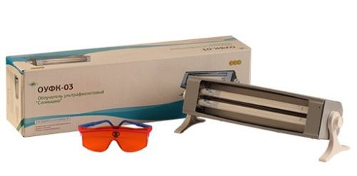 Предназначен для проведения с лечебной целью общих, и местных облучений эффективным излучением в диапазоне 300 – 400 нм при инфекционных, инфекционно-аллергических, воспалительных, посттравматических заболеваниях и закаливания организма взрослых и детей в лечебных и лечебно-профилактических учреждениях, а также в домашних условиях. В народе его называю лампа кварцевая ОУФк 03 или мини солярий Солнышко. Применяться лампа "Солнышко" ОУФк-320/400-03 может не только в медицинских учреждениях, но и в санаториях, профилакториях или в домашних условиях.