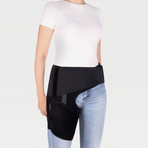 бандаж обеспечивает поддержку, снимает нагрузку с мышц тазобедренного сустава, надежно защищает его, способствует умень-