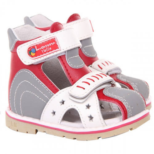 Сандалии Lm202 Luomma детская с закрытым носиком, серый/красный