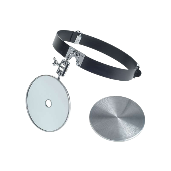 Инструмент комплектуется лобной повязкой, которая позволяет доктору освободить руки. Проведение осмотра станет еще удобнее, если налобная лента регулируется, а изделие оснащено шарниром для поворота и фиксации зеркального круга под нужным углом.