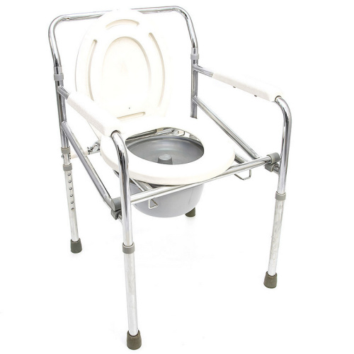 Стул-кресло с санитарным оснащением используется при уходе за людьми с инвалидностью и больными в лечебном стационаре или домашних условиях. Стул не занимает много места, благодаря складной конструкции.