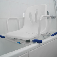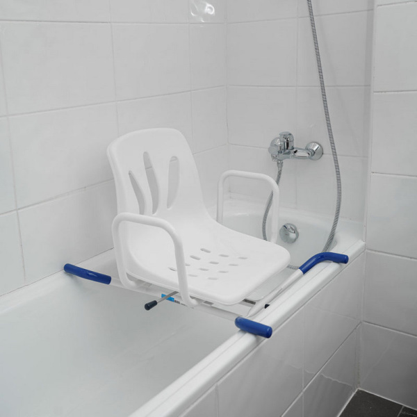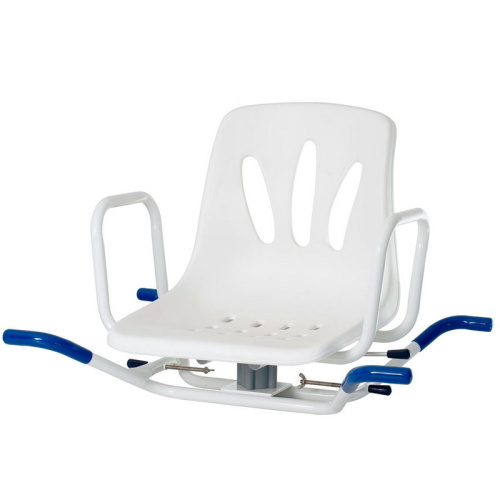 Пластиковое поворотное сиденье для ванны BS Twist облегчает принятия водных процедур. Алюминиевые ножки с резиновыми наконечниками создают крепкое прилегание сиденья к ванне. Спинка и поручни поддерживают удобное положение тела и не позволят упасть. Отверстия способствуют оттоку воды.Сиденье снабжено поворотным механизмом, с помощью которого можно развернуть его на 90 градусов. Такой механизм делает использование сиденья еще легче и безопаснее: для того чтобы сесть, нужно будет повернуть сиденье к себе, сесть, приподнять ноги и развернуться в ванну. Усилий потребуется еще меньше, чем с обычными сиденьями. Есть фиксаторы положения, которые предотвратят спонтанные повороты кресла.