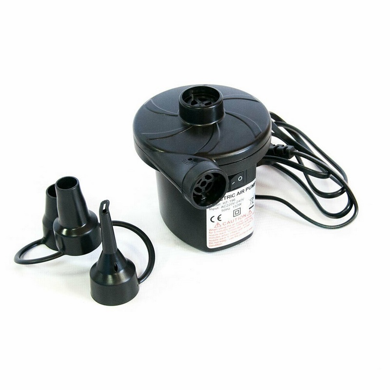 Электронасос поставляется с тремя насадками для надувания, а также инструкцией по эксплуатации. Для откачки воздуха используется второе гнездо сверху насоса.