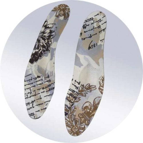 Сверхтонкие ортопедические стельки для обуви с зауженным носком. В основе стельки упругий каркас с минимально возможной шириной в зоне среднего отдела стопы. Верхнее покрытие выполнено из хлопковой ткани. Применяются данные ортопедические стельки при плоскостопии и вальгусной деформации.